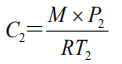 公式:C1為冷凝前氣體濃度,g/m3C2是凝結氣體的濃度,g/m3M是氣體物質的分子質量;P1T1氣體的飽和蒸汽壓力;P2T2氣體的飽和蒸汽壓力;R為常數,8.314p表示氣壓,101325 Pa;η是冷凝效率。75℃時,爆炸場中有機物的最大飽和濃度見表1