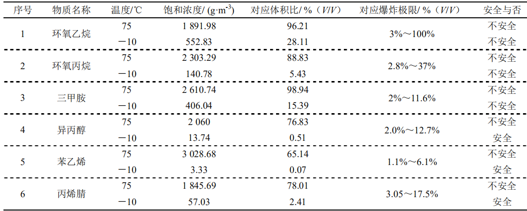 1不同溫度下有機物飽和濃度安全性分析